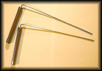 A Y- or L-shaped twig or rod, called a dowsing rod, divining