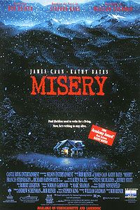 Former nurse Annie Wilkes saves the life of novelist Paul Sheldon after a car accident brought on by a severe blizzard. Wilkes, an obsessive fan of Sheldon's "Misery" romance series, takes him home and serves as his caretaker. Annie is severely mentally disturbed, and she prevents him from leaving or contacting the rest of the world. Once Annie finds out Paul has killed off the titular character of his novels, Misery Chastaine, in his latest published book, she flies into a rage and nearly kills him. She also coldly tells him that she never called the doctors, Paul's agent, or his daughter, as she'd previously said she'd done. After leaving for a few days, she forces him to burn the manuscript he had carried with him and write a new "Misery" story, Misery's Return, in which Misery is somehow brought back to life. Paul eventually escapes from his room. He finds a photograph album with newspaper clippings of Annie's history; she had been acquitted on charges of infanticide while serving as head maternity nurse in a hospital. She has also killed several other hospital patients over the years, and also killed her father and college roommate. Annie discovers Paul's forays into the rest of the house and, to prevent further ones, cripples (or "hobbles") him in the infamous "sledgehammer scene" by breaking his ankles with a sledgehammer and a block of wood. A local sheriff, Buster, who is investigating Sheldon's disappearance comes to suspect Annie. After a visit, a noise from inside the house leads him to find Paul in the basement, where Annie hid him when she saw Buster coming. However, Annie immediately shoots Buster with a shotgun. Annie then decides to kill Paul with a small handgun, but he tells her that he understands that they were meant to be together. Falling for his lie, she is overjoyed and lets him live to finish the book. Upon completion of the "Misery" book, Annie is ecstatic and plans to commit murder-suicide with Paul. However, Paul acquires a chance to prevent this and lights his finished novel afire. He takes advantage of her anguish by attempting to knock her unconscious with the typewriter he used to write the manuscript. This fails, and the two engage in an intense brawl. Paul throws the typewriter while she is trying to put out the fire. It hits her, but she gets back up and grabs Paul and pushes him against the wall, smashing his head into the glass window. Paul fights back by gouging her eyes and punching her down. Annie grabs her small gun she had and shoots Paul, but only hitting him in the shoulder. She is about to shoot him again, but Paul jumps off his wheel chair and tackles her. He knocks the gun out of her hand and begins to choke her with the burnt pages and slams her head against the floor. She escapes by kicking him in the groin. She comes running at him, attempting to finish him off, but Paul trips her and she lands head first onto the typewriter. Paul believes she is finally dead, until Annie jumps back up for one more fight. Paul bashes her twice in the face with her pig trophy and finally kills her. We are to assume he was rescued by the Police a few hours later who were searching for Buster. The movie then continues eighteen months after Paul was rescued; he is shown in New York City having lunch with his agent, Marcia Sindell. The audience learns that Paul didn't burn the new novel he made at Annie's house, but burnt scratch papers for he thought the book was too good. They discuss his new novel, which is separate from the "Misery" series. Paul rejects a suggestion to write about his experiences with Annie because he is constantly haunted by them....